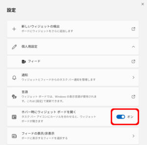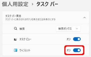 ※ ウィジェットをオフにすると、タスクバー左端に表示されていた